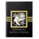 Das Design ist mit einem Eis-Skate über einem Schneeflocken-Wappen mit schwarzem und Imitat goldenem Glitzer-Hintergrund ausgestattet. Dieses elegante Wintersportdesign dient als cooles, modernes und einzigartiges Notizbuch mit personalisiertem Text.