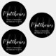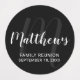 Personalisierte Monogram und Family Name Fevor Labels verfügen über Familiennamen in weißem, modernem Script Schriftart Stil und Monogramm im hellgrauen, modernen Script Schriftart Stil als Hintergrund mit Details in weißen Sans Serif Schriftart Stil auf schwarzem Hintergrund. Ideal für Wiedersehen und alle besondere Anlässe.