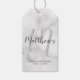 Personalisierte Monogramm- und Familienname-Fvor-Tags sind mit Familiennamen in grauem, modernem Script-Schriftart-Stil und Monogramm im hellgrauen, modernen Script-Schriftart-Stil ausgestattet. Das Jahr wird auf weißem Marmor im Stil eines grauen serifenlosen Schriftartes gehalten. Ideal für Wiedersehen-Liebhaber.