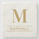 Das klassische und moderne Design des personalisierten Getränke-Untersetzer besticht durch eine elegante Serif-Monogramm, die mit dem Nachnamen Ihrer Familie kombiniert wird. Die leichten Streifen vor einem gemusterten Hintergrund aus weißem Marmor sorgen für einen Hintergrund. Antiquitätengold / Messingtext und Designfarben können so modifiziert werden, dass sie sich perfekt mit Ihrer Wohngestaltung abstimmen.