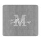 Personalisierte monogramm graue Glasspanplatte. Elegante Geschenkidee für Zuhause Küche oder Restaurant. Schönes Design mit personalisierbarem Text. Stilvolle mit Monogramm Geschenkidee für Hochzeit, Koch, Mutter, Ehefrau oder Freundin, die Lieben kochen. Extravagante Wohngestaltung.