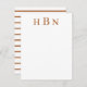 Das zeitlose und elegante Design einer benutzerdefinierten Notenkarte bietet cognac/whiskey-braune Buchstaben, die mit den Initialen des ersten, des letzten und des mittleren Namens im klassischen Serifentyp personalisiert werden können. Der Platz für Ihre handgeschriebene Notiz ist inbegriffen und die Rückseite der Karte weist ein hübsches Muster aus horizontalen, braunen und weißen Streifen auf.