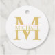 Personalisierte Monogramm- und Name-Fvor-Tags verfügen über ein personalisiertes Goldmonogramm im klassischen Serif-Schriftart-Stil mit einer Namensbox in der Mitte des Monogramms auf weißem Hintergrund. Perfekt als Lieblingsmarken für Wiedersehen, Ferien, Party und jeden besondere Anlass. Bitte beachten Sie: Die Details der Folie werden im Kunstwerk simuliert. Bei der Herstellung dieses Produktes wird keine Folie verwendet.