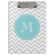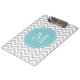 Personalisierte Monogramm-Zwischenablage mit grauem Zickzack Muster. Benutzerdefinierte Hintergrundfarbe mit türkisfarbenem Etikett. Erstellen Sie Ihre eigene mit Ihrem Namen Anfangsbuchstaben. Elegantes Zickzack-Design.