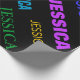 Personalisierte Geburtstagsverpackungspapierrolle. Neonfarbtypographieentwurf mit individuellem Namen. Kundengerechte Hintergrundfarbe. Kundenspezifische Geschenkverpackung für Geschenke. Ein eines netten bunten Textmusterdruckes. Passend für Mannfrauen und Kindergeburtstag oder niedliche Idee des Weihnachten etc. für Jungen oder Mädchen am Geburtstags-Party.