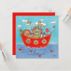 Dieses schöne Bild eines Stifts und Aquarellbilders von Helen McCartney Designs zeigt eine Gruppe süßer Tiere, die an Bord der Noah's Ark zusammengepeitscht werden.