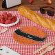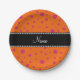 Personalisierte orange rosa Polkanamenspunkte Pappteller