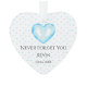 Ehre die Erinnerung an deinen wertvollen Jungen mit diesem wunderschönen, herzförmigen Ornament-Sake. Dieses gedankenvoll entworfene Werk ist perfekt für Eltern, die ihren Verlust trauern oder als bedeutendes Geschenk für Begräbnisgäste, um das Gedächtnis Ihres Kleinen für immer zu schätzen."