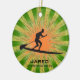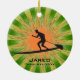 Padleboarding Personalisiert Ornament Weihnachten 20XX. Ein Paddleboarder Posen auf einem Brett vor einem grünen und orangefarbenen Sternexplosion Hintergrund. Alle Texte individuell anpassbar, vorne und hinten!