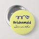 Personalisierte, pastellgelbe Brautknöpfe mit niedlicher Liebe und elegantem Schriftart. Niedlicher Druck für Junggeselinnen-Abschied, Brautparty und Hochzeitsfeier. Besuchen Sie unseren Fun Store für extravagantere und klassische Heiratsdesigns. Anpassbare Hintergrundfarbe.