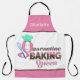 Personalisierte Quarantine Backen Queen Schürze mit schokoladenbraunen Schriftzeichen und rosa-weißem Zuckerguss, ein Whisk und Koch Hut. Das ideale Geschenk für alle, die sich durch die Covid Quarantine gebacken haben!