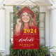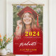Feiern Sie Ihren Abschluss stilvoll mit unserem individuellen Graduiertenbanner! Mit einem lebendigen Foto einer jungen Frau in einem roten Graduiertenkappen und einem Boho-Kleid erweckt dieser Banner das Wesen von Freude und Leistung. Umgeben von einem ruhigen, boho-inspirierten Hintergrund mit Wildblumen, einer rustikalen Holzbank und einem malerischen, von Bäumen gesäumten Weg, ist dieses Banner zugleich elegant und natürlich. Geben Sie Ihren Namen, die Schule und die Klasse von 2024 Details für eine personalisierte Touch. Dieses einzigartige Design ist ideal für jeden Graduiertenabend und verbindet moderne Eleganz mit floralen Akzenten, feinem Text und einem Retro-Ambiente. Klicken Sie, um Ihr Banner noch heute anzupassen und Ihre Abschluss-Feier wirklich unvergesslich zu machen!