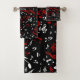 Perfektes Geschenk für den Musikfreund oder den Musiker mit einem Entwurf, der ein gelegentliches durcheinandergebrachtes Muster der musikalischen Anmerkungen und der dreifachen Clefs in Rotem und im Weiß auf einem klassischen schwarzen Hintergrund kennzeichnet. Einfach, mit Ihrem eigenen Text auf einem koordinierenakzent besonders anzufertigen