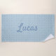 Entspannen Sie am Strand mit diesem Personalisierten Strandtuch in ruhiger Lage, das sich in einem ruhigen Design aus überlappenden Kreisen in ozeanblauen Farbtönen mit einer Touch von Meeresgrün präsentiert. Die Vorderseite dieses Handtuches ist aus einer weichen Polyester-Mischung, die eine lebendige und dauerhafte Oberfläche, während die Rückseite ist aus 100% Baumwolle für ultimativen Komfort und Absorbierfähigkeit. Passen Sie Ihr Handtuch an, indem Sie Ihren Namen in blau-grauem Skript hinzufügen, um es einzigartig zu machen. Dieses luxuriöse Handtuch verbindet Funktionalität und ästhetische Anziehungskraft und sorgt für ein stilvolles und komfortables Austrocknen. Dieses personalisierte Badetuch eignet sich ideal zum Entspannen am Pool oder zum Entspannen am Sand und ist ein Muss für alle Strandliebhaber.
