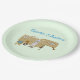 Camping-Papier-Teller mit RV-Image und benutzerdefiniertem Text. Geben Sie einen oder mehrere Namen oder ein Camping-Sprichwort auf runden oder quadratischen Tellern ein. Hellgrüne Farbe mit Camper-Bild in der Mitte und Namen in blau oben. Dieses Design macht allen Campern Spaß und wird die Gäste rund um das Lagerfeuer beeindrucken.