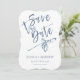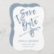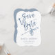 Romantische Blue Calligraphy Save the Date Card mit Wedding Rings - Personalisiert Save the Date Wedding Card mit Blue Rings und Calligraphy Design Ankündigen Sie Ihren besonderen Tag mit dieser eleganten "Save the Date"-Karte mit klassischem Blau-Weiß-Design. Diese Einladung zeigt wunderschön gestaltete Kalligraphie und eine charmante Illustration von ineinander greifenden Hochzeitsringen. Diese Karte ist perfekt für Hochzeiten und strahlt Romantik und Raffinesse aus. Ideal für Paare, die eine sanfte, raffinierte Touch für ihre Hochzeitsfeiern suchen. Passen Sie die Details an, um Ihren Gästen einen unvergesslichen ersten Eindruck zu vermitteln.