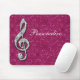 Elegantes, bezauberndes girly personalisiertes Mousepad. Schön, Blendungstrendy Druckbildsilber und -diamanten, die musikalische Anmerkung der Juwelen über einen Glitter-Druckbildhintergrund des heißen Rosas des Chic funkelnd bling sind. Ein niedliches, nobles, modernes, stilvolles, hübsches Geschenk für sie oder irgendein Musikliebhaber.