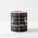 Einzigartige Tasse für Lehrer oder jede Dame mit nüchternem Stil. Eleganter personalisierter trendiger Stil. Breite horizontale schwarz auf schwarzem Striphintergrund mit rosa Schrift und weißem Lorbeerkranz. Fügen Sie dieser personalisierten trendigen Tasse Namen, mit Monogramm Single Buchstaben Initial und Namen hinzu.