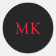 Personalisierte Schwarz-Rot-Monogramm-Initialen Runder Aufkleber