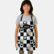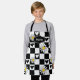 Eine niedliche Schürze mit einem schwarz-weiß karierten Design mit Herz und Gänseblümchen, die sich perfekt für Kunst, Kunsthandwerk und kulinarische Abenteuer eignet.