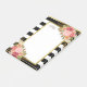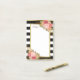 Elegant personalisiert Post it Notes mit schwarz-weiß gestreiften Design und rosa und goldfarbenen Blumen.