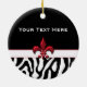 Personifizieren Sie diese schwarze rote Zebra-Lilienverzierung für jede mögliche Gelegenheit oder Geschenk. Die Verzierung kennzeichnet ein Rot-ImitatmetallLiliensymbol auf einem Schwarzen, einem Rot und einem Zebramusterentwurf.