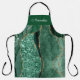 Personalisierte Sequin Green Agate Schürze mit Namen in Skriptschrift. Chic smaragdgrün Sequin Stil und Marmor geode Muster.