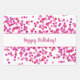 Ein Design bietet farbenfrohe Bänder mit dem Template "Happy Birthday" Text. Zwei Designs zeichnen sich durch rosa und lila Sequenzen mit Vorlagentext aus. Personalisieren Sie den Geburtstagstext der Vorlage, behielte Sie den Text oder bearbeiten Sie ihn mit dem Entwurfstool, um einen Schriftart auszuwählen, den Sie bevorzugen.