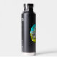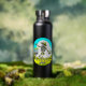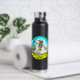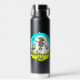 Blaue und grüne personalisierte Wasserflasche mit Vintagem Retro-Ambiente mit einem Skelett in einer Sonnendeck, die im Wald golfen.