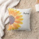 Dieses einzigartige Kissen ist mit gelben, wasserfarbenen Sonnenblumen dekoriert.