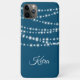 Illustrierte funkelnde Saitenleuchten und Ihr Name in extravaganter Schrift, betont dieses blaue iPhone Case und macht es zu einem perfekten Accessoire oder Geschenk. Dieser Fall kann leicht ohne Monogramm oder Namen personalisiert werden, falls gewünscht.