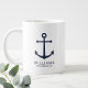 Moderne Minimalistische Nautical Navy Blue Anchor Personalisierte Trauzeugen Tasse mit marineblau Anker und personalisierten Trauzeuge mit Titel in marineblau modernen Sans Serif Schriftart Stil auf weißem Hintergrund. Auch perfekt für Trauzeuge, Brautvater, Ringträger, Trauzeugin, Blume Mädchen, Brautmutter und mehr.