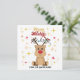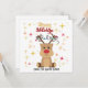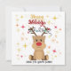 Niedliche Rentierkarte, die mit Ihrem Familiennamen personalisiert werden kann. Farbenfrohe maron/rot und goldene Ferienfarben.