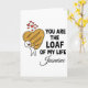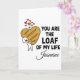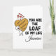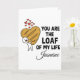 Suchen Sie nach einer einzigartigen und witzigen Art, Ihre Liebe zu zeigen? Diese personalisierte Grußkarte "You Are The Loaf Of My Life" ist die perfekte Mischung aus Humor und Herz. Mit einer süßen, handgezeichneten Illustration einer Figur, die einen riesigen herzförmigen Sauerteig umarmt, ist sie ein Muss für Brotliebhaber, Kohlenhydrat-Enthusiasten und Fans von cleveren Wortspielen.