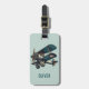 Dieses einzigartige Reise-Tag zeigt ein beängstigendes Vintages Bild eines klassischen, durch den Himmel schießenden Doppelflugzeugs. Das Flugzeug, das in einer coolen Palette von Grüntönen dargestellt wird, zeichnet sich vor einem grünen Hintergrund aus.
