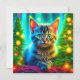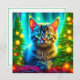 Hübsches Kätzchen sitzend vor beleuchteten Weihnachtsbäumen personalisierte Weihnachtskarte.