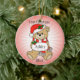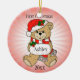 Ein süßer Teddybär auf roter Sternexplosion mit individualisierbarem Namen & Datum vorne und hinten. Schriftart und Textfarbe können ebenfalls geändert werden.