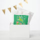 Fun Rentier im Schnee fügen Sie Ihren eigenen Text oder Name Weihnachten Party danke Ihnen Geschenktasche. Ideal für Ihre Weihnachtsgeschenke. Feines, lustiges Design mit einem Rentier, der über Boxed-Geschenke in festlichem Rot und Grün springt. Personalisieren Sie mit Ihrem Gruß und Familiennamen, liest derzeit Happy Holidays aus der Familie Dickens.