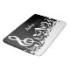 Vervollkommnen Sie für den Musikfreund oder den Musiker mit einem ins Auge fallenden modernen Entwurf, der weiße durcheinandergebrachte musikalische Anmerkungen und einen großen dreifachen Clef auf einem klassischen schwarzen Hintergrund kennzeichnet. Der Entwurf umfaßt kundengerechten Text für einen Namen oder Text Ihrer Wahl, um ein einzigartiges und personalisiertes Musikgeschenk herzustellen.