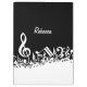 Vervollkommnen Sie für den Musikfreund oder den Musiker mit einem ins Auge fallenden modernen Entwurf, der weiße durcheinandergebrachte musikalische Anmerkungen und einen großen dreifachen Clef auf einem klassischen schwarzen Hintergrund kennzeichnet. Der Entwurf umfaßt kundengerechten Text für einen Namen oder Text Ihrer Wahl, um ein einzigartiges und personalisiertes Musikgeschenk herzustellen.