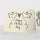 Eine Abbildung von 2 wunderschönen Tauben mit fließendem Band, an der ein Herz der Liebe befestigt ist.
