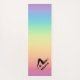 Weiblicher Yogini übender Hand-gezeichneter Entwurf der Yoga-Pose HALASANA gesetzt auf einen Pastellregenbogen ombre Hintergrund. Personalisiertes (addieren Sie Namen oder anderen Text), Geschenk für Yoga Pilates Liebhaber.