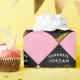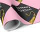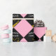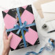Abschluss-Geschenkpackung mit kreativem Schwarz-Gold-Cap-Design auf rosa Hintergrund. Text bearbeiten, um den Namen des Absolventen hinzuzufügen.