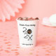 Erstellen Sie ein paar personalisierte Party-Vorräte, die perfekt für Abschlussfeiern sind. Diese Papiertassen sind bereit, um mit Ihren Absolventen Abschluss Jahr und Foto mit Spots, um ihren Namen und ihren Schulnamen. Das Foto erscheint innerhalb der Null des Jahres. Schwarze Schriften heben sich vor einem weißen Hintergrund hervor.
