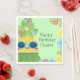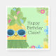 Feiern Sie ihren Geburtstag mit diesem Banner zum Thema Ananas. Der hellgelbe Hintergrund mit einer Ananas in einer Sonnenbrille. Die Ecken sind mit bunten Blume geschmückt. Clipart by TheHappyGraphics.