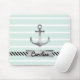 Modernes Mousepad mit grauem Aquarellanker auf einem minzgrünen und weiß gestreiften Hintergrund. Sie können das Design auch mit benutzerdefiniertem Text unter dem Anker personalisieren.