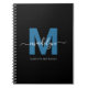 Personalisiert Elegant Modernes Black and Blue Script Name Initial Monogram Spiral Notebook. Dieses schicke Notizbuch ist mit einer raffinierten, stilvollen Touch gefertigt, die auf einem schwarzen Hintergrund einen flach blauen Ersteindruck aufweist. Ein anmutiger, weißer Skriptname überlagert das Original in eleganter Kalligrafie, wobei der vollständige Vor- und Nachname unten in einem sauberen, modernen Schriftart für ein glänzendes, personalisiertes Finish gedruckt wird. Egal, ob es sich um Noten im Büro handelt, um Schulaufgaben abzuschließen - ideal für Mittelschulen, Gymnasien oder Unis - oder um ein stilvolles Skizzenbuch: Dieses Notizbuch ist ein hervorragendes, nachdenkliches Geschenk für Ferien, Geburtstage, zurück zur Schule für Lehrer, Schüler oder jeden besondere Anlass. Eleganz und Funktionalität verbinden, ist es perfekt für alle, die eine raffinierte, persönliche Touch in ihren täglichen Essenzen Liebe haben.