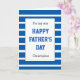 Dies ist eine personalisierte blaue Vatertagskarte für den Sohn, die auf der Vorderseite mit seinem Namen personalisiert werden kann. Das Innere dieser modernen blauen Happy Father's Day Card liest eine Vatertagsbotschaft, die Sie leicht personalisieren können, wenn Sie gewollt haben. Der Rücken ist ein Ort, an dem Sie das Jahr ganz individuell gestalten können. Das wäre ein einzigartiger Sake für ihn.