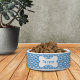 Verwöhnen Sie Ihr wertvolles Haustier mit diesem personalisierten zeitlosen blauen Gingham mit Pfoten gemusterte Haustierschüssel! Personalisieren Sie es mit dem Namen Ihres Hundes im Knochen.