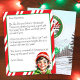 Fügen Sie dem personalisierten Brief des Weihnachtsmannes den Namen Ihres Kindes hinzu. Vintage Aquarellrücken Retro niedliche kleine braune haarige elfenfarbene Mädchen lächelnd. Zurück hat ein Nordpol-Schild mit leuchtenden Weihnachtsbeleuchtung und einem schneebedeckten Hintergrund mit einer Briefmarke vom Santa und dem Nordpol. Kerzenhalterung.